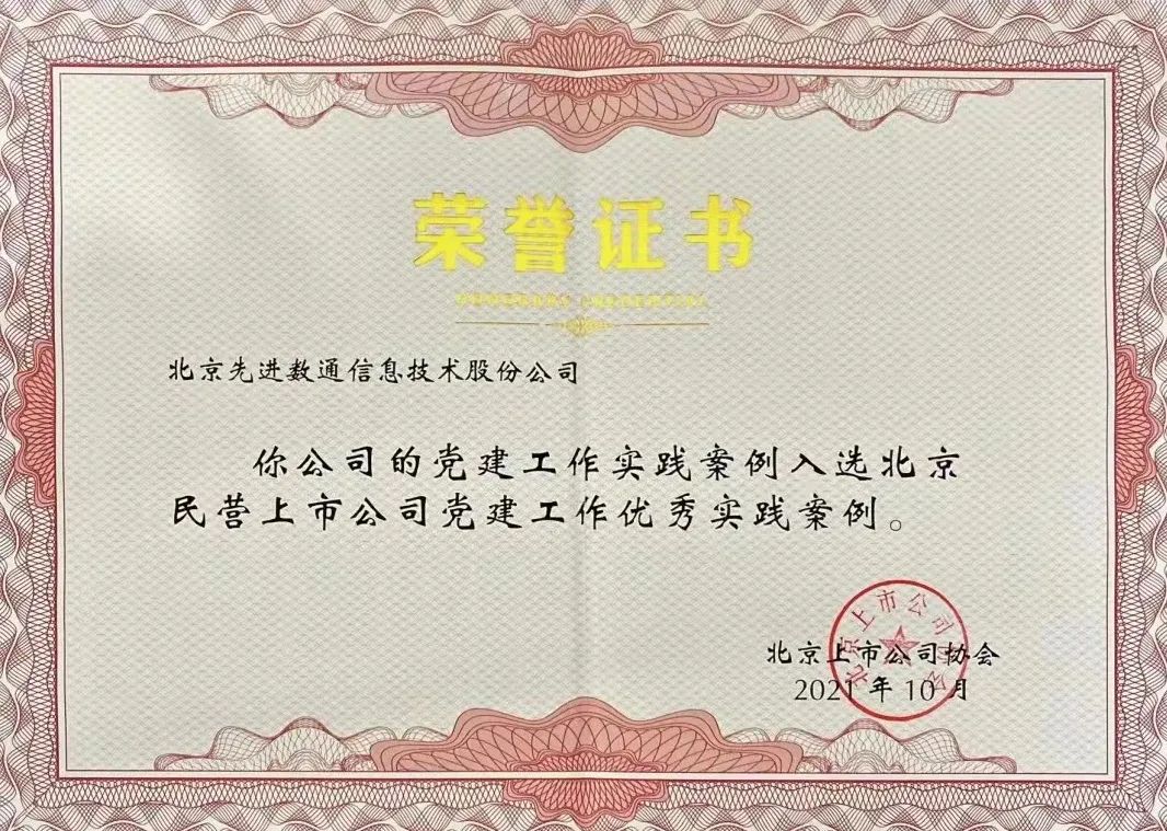 近期,北京上市公司协会授予北京PA真人国际信息技术股份公司荣誉证书,PA真人国际党建工作实践入选北京民营上市公司党建工作优秀实践案例,相关党建活动已收录在《北京民营上市公司党建工作优秀实践案例汇编》。